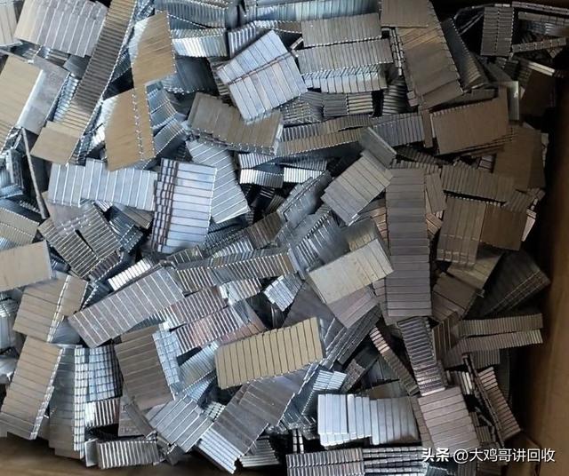 今天跟大家分享一些废旧物资回收的知识。强磁,做回收的应该都不陌生,给大家详细说一下,强磁回收这方面的一些知识。我们说到这个强磁指的是钕铁硼强磁,它的主要成分是稀土元素钕、硼,里面的钕含量能达到29%-32.5%,铁的含量是在63.95%到68.65%,非金属元素硼的含量则在1.1%-1.2%,里面还添加了其他的元素,0.6%-8%镝,还有0.3%-0.5%的铌,还有0.05-0.15的铜等一些其他少量元素。